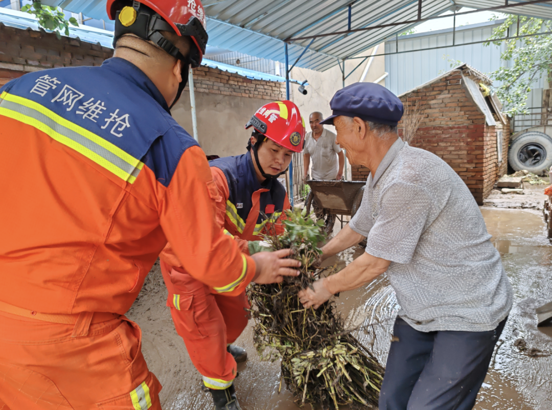 國家管網集團蘭州維搶修中心搶險隊伍抵達后,迅速架設應急照明設備,點亮夜間救援通道;組織力量深入受災區域,全力幫助群眾清理淤泥,暢通道路。