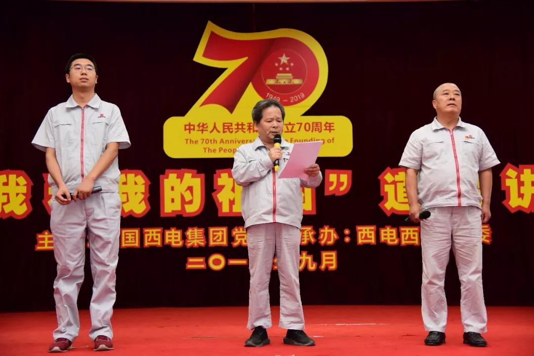 活動中,展播了各單位《我和我的祖國》系列視頻,與會同志同唱了愛國歌曲《五星紅旗迎風飄揚》,聆聽了詩歌朗誦《我的祖國》和西電故事《爭做頂梁柱,騰飛中國龍》,欣賞了展現(xiàn)工人力量的舞蹈表演《奮進新時代》,三位“建國”同志結合個人成長、企業(yè)變遷、祖國發(fā)展談了自己的切身感悟,西電西變、西開有限兩家單位分別作了關于道德講堂的經(jīng)驗交流,與會人員共同欣賞了歌伴舞《我和我的祖國》。現(xiàn)場活動氣氛熱烈,大家情緒高昂,故事生動感人,歌聲優(yōu)美嘹亮。
