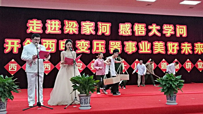 活動最后,由鐘震、孟穎超、宋飛、馬小雯等青年職工表演的歌伴舞《不忘初心》展現(xiàn)了老一輩共產(chǎn)黨人在惡劣的政治生態(tài)和艱苦環(huán)境下,堅定理想信念的奮斗人生,激勵廣大干部職工不忘初心、牢記使命、勇于擔(dān)當、主動作為,以踏石留印的堅實腳步向建成“世界一流,中國第一”變壓器產(chǎn)業(yè)集團的目標邁進,努力開創(chuàng)西電變壓器事業(yè)美好未來。